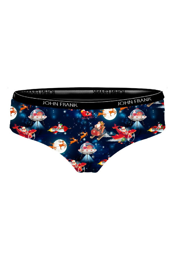 Dámské kalhotky střihu hipster od značky John Frank z limitované vánoční kolekce (omezené množství, bez možnosti doplnění). Bavlněné kalhotky s módně zpracovaným potiskem jsou velmi příjemné na dotek a pohodlné při nošení. Jemná, středně široká guma v pase má kolem logo John Frank. Do vnitřního dílu je zapracován bavlněný klínek pro komfortní nošení. Slaďte se v kolekci ON & ONA, dámské kalhotky i pánské boxerky naleznete u nás v jednom designu, buďte IN s partnerem.