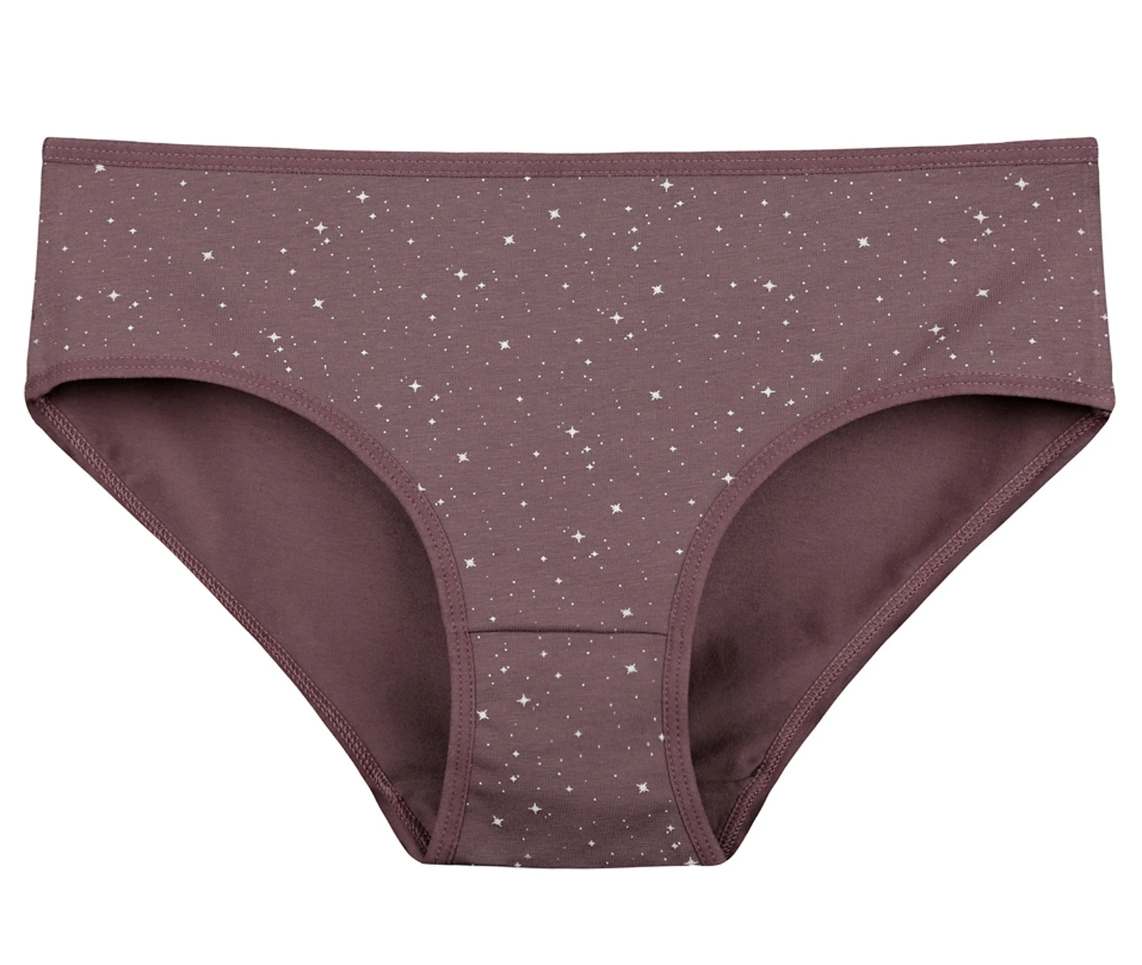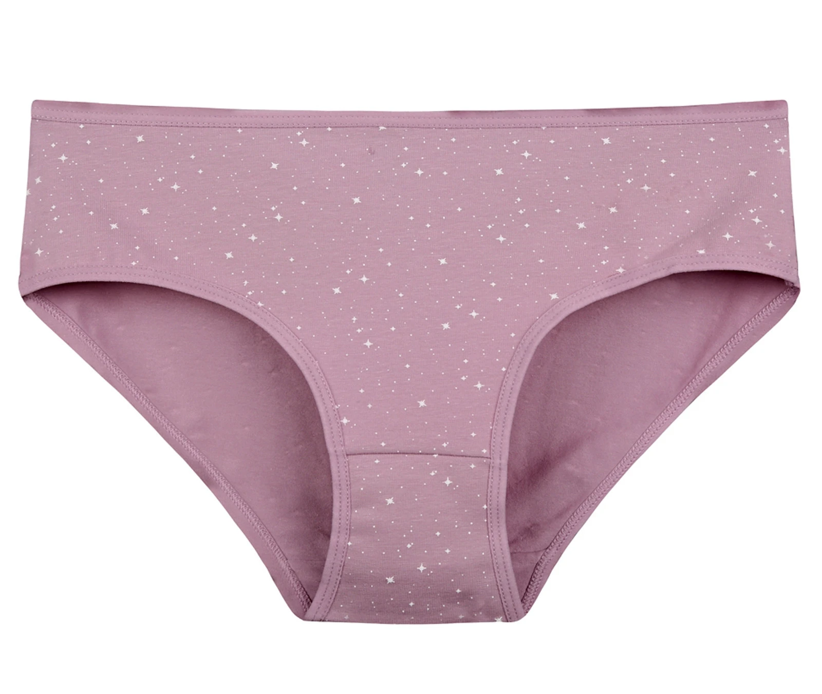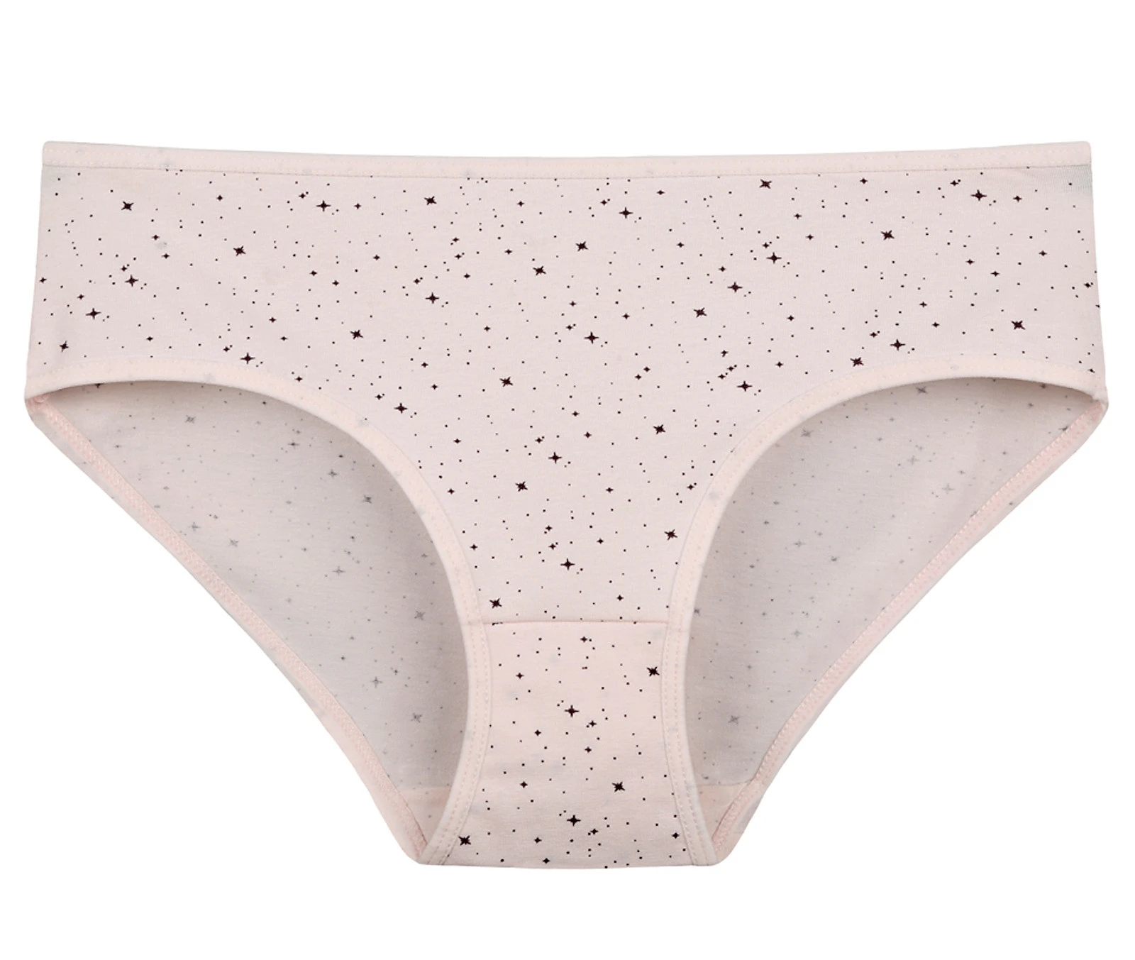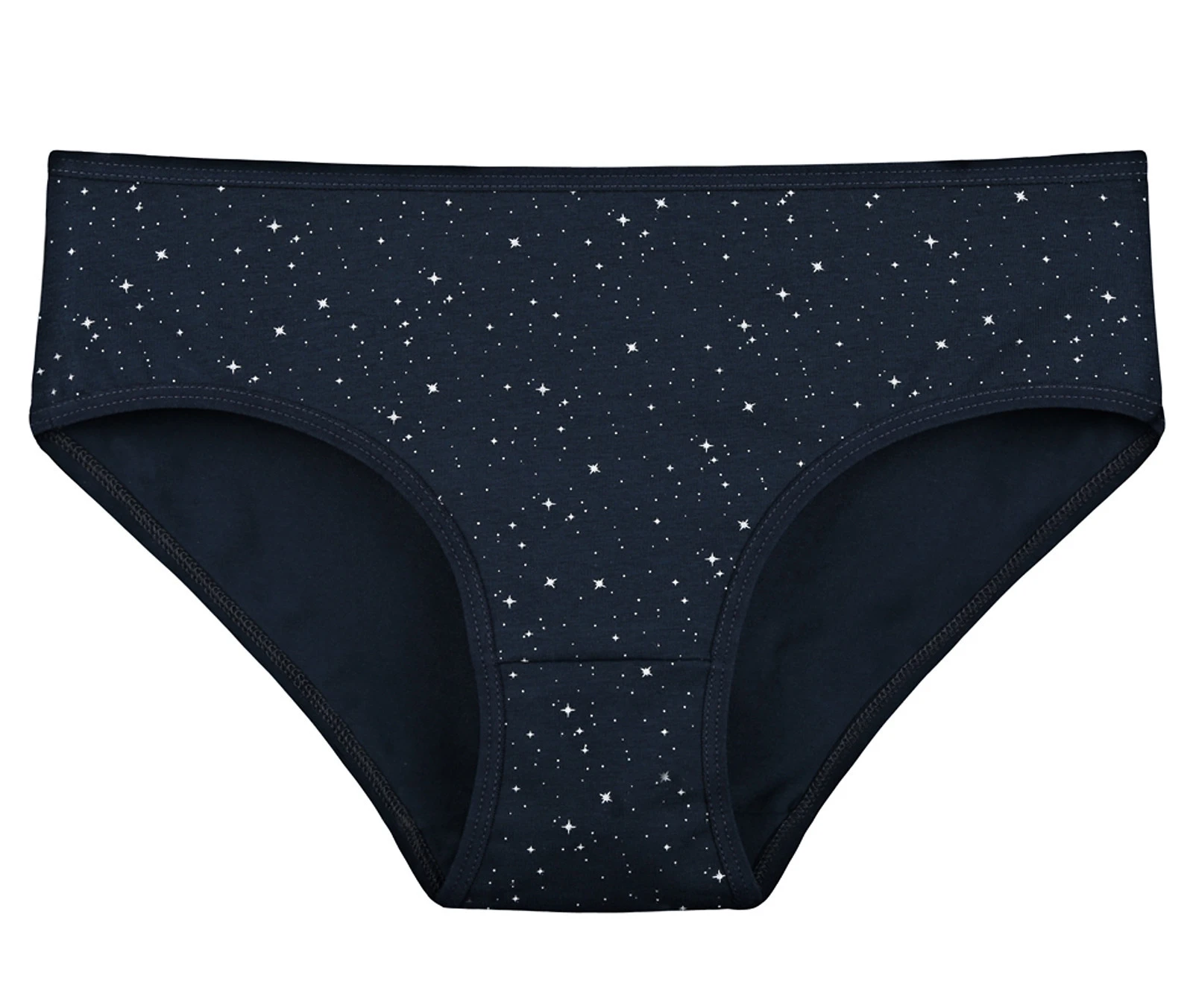 Dámské bavlněné kalhotky Hvězdička. Slušivé klasické vyšší kalhotky s potiskem hvězdiček jsou pohodlným typem spodního prádla pro všechny příležitosti. Obzvláště oceníte materiálové složení - 95% bavlna a 5% elasten. Použitý materiál je příjemný a poddajný na dotek.