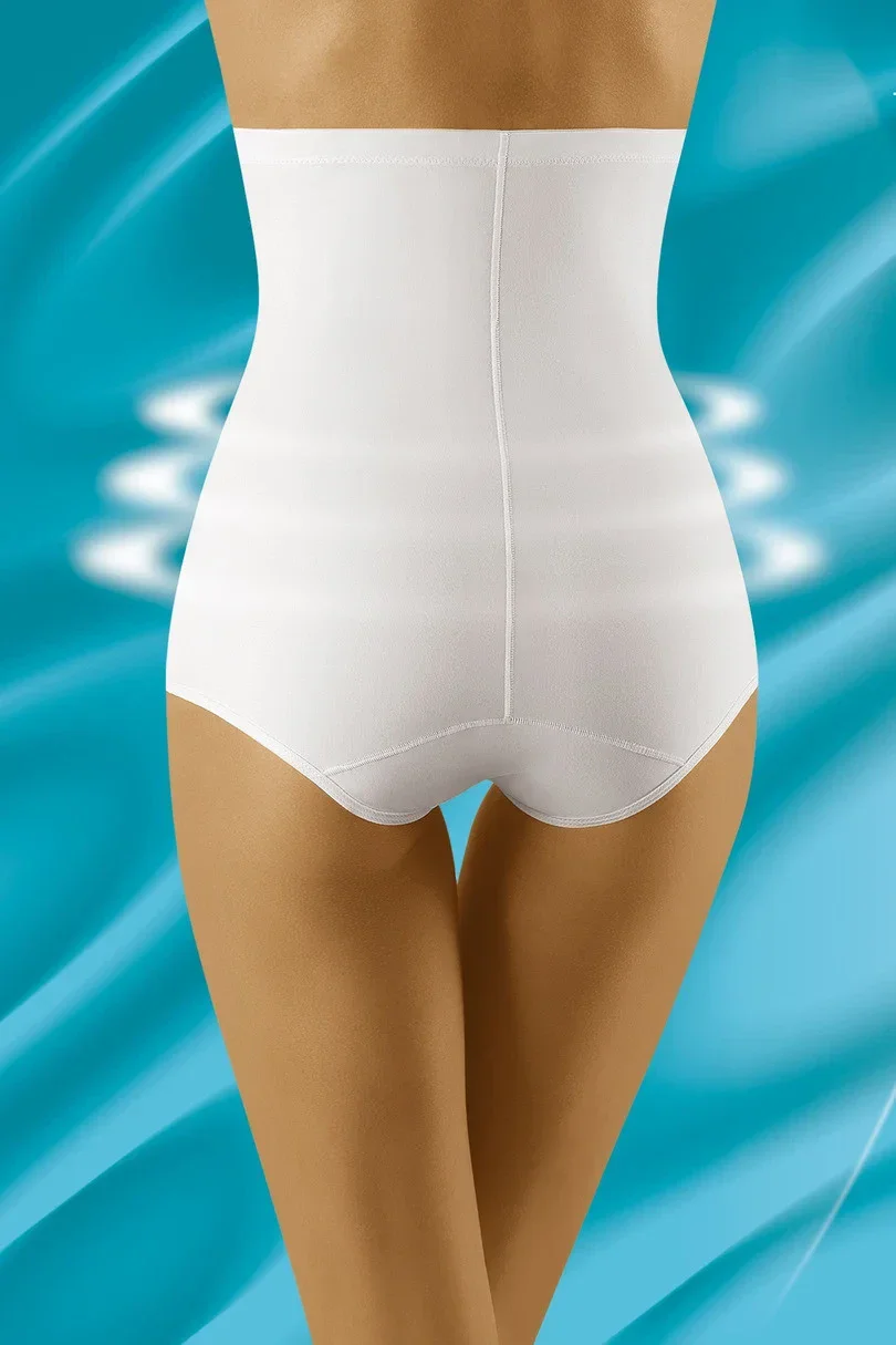 Vysoké, korigující kalhotky. Modelují pas a boky, splošťují břicho. Všivky na přední straně opticky prodlužují postavu. Na horním okraji z vnitřní strany je silikonový pásek, který brání sesouvání kalhotek.