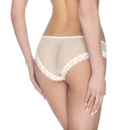Pohodlné kalhotky z lehce průhledného tylu s krajkovým lemem a malou mašličkou v horní části. 89 % polyamid, 11 % elastan.