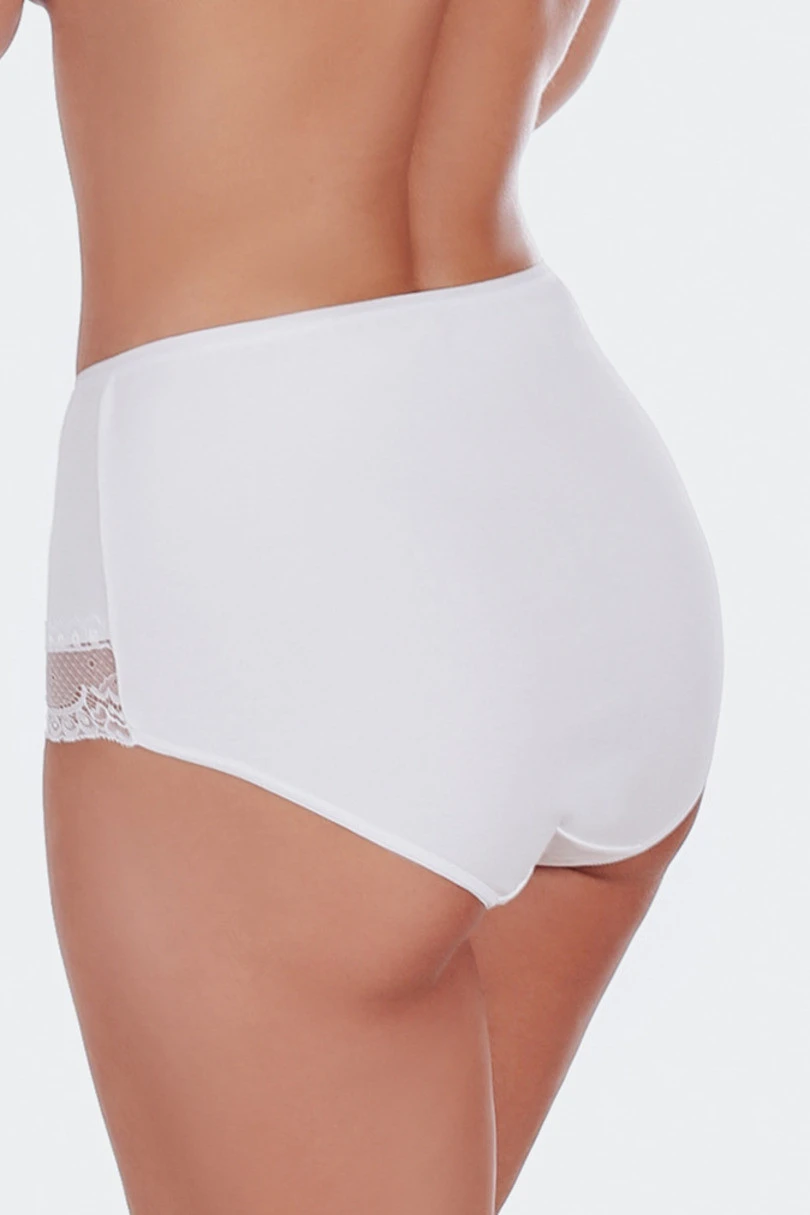 Figi damskie Irena to idealne połączenie komfortu, klasyki i kobiecej elegancji. Wysoki, zabudowany krój doskonale dopasowuje się do sylwetki, delikatnie modelując biodra i zapewniając pełną swobodę ruchów przez cały dzień. Wykonane z wysokiej jakości, miękkiej i oddychającej bawełny z dodatkiem elastanu, figi gwarantują wygodę noszenia oraz trwałość nawet po wielu praniach. Nogawki zostały subtelnie wykończone ażurową koronką o kwiatowym motywie, która dodaje bieliźnie lekkości i kobiecego charakteru. Model Irena to doskonały wybór zarówno na co dzień, jak i na wyjątkowe okazje – dla kobiet ceniących wygodę i estetykę.