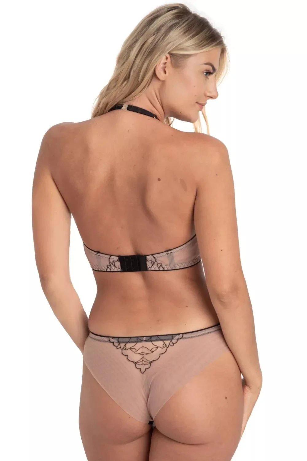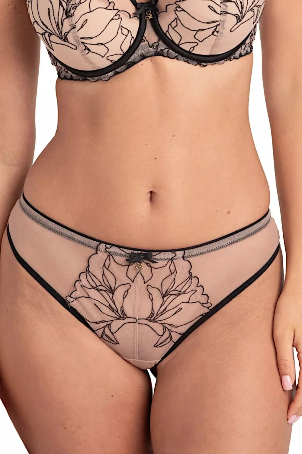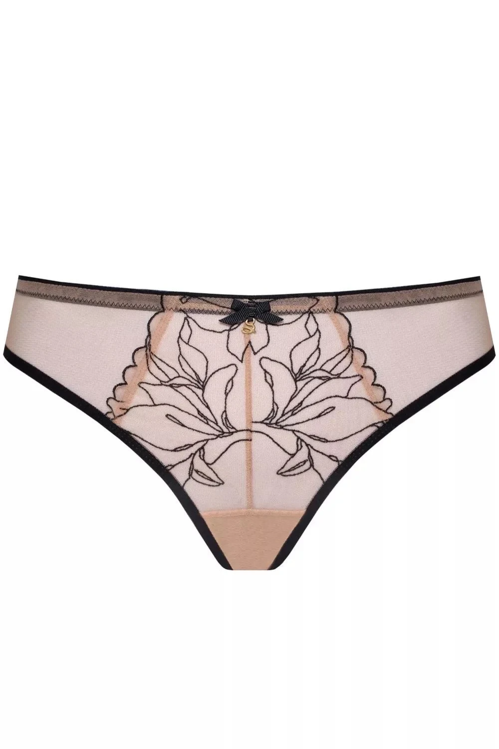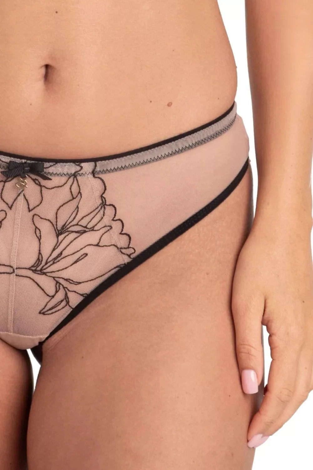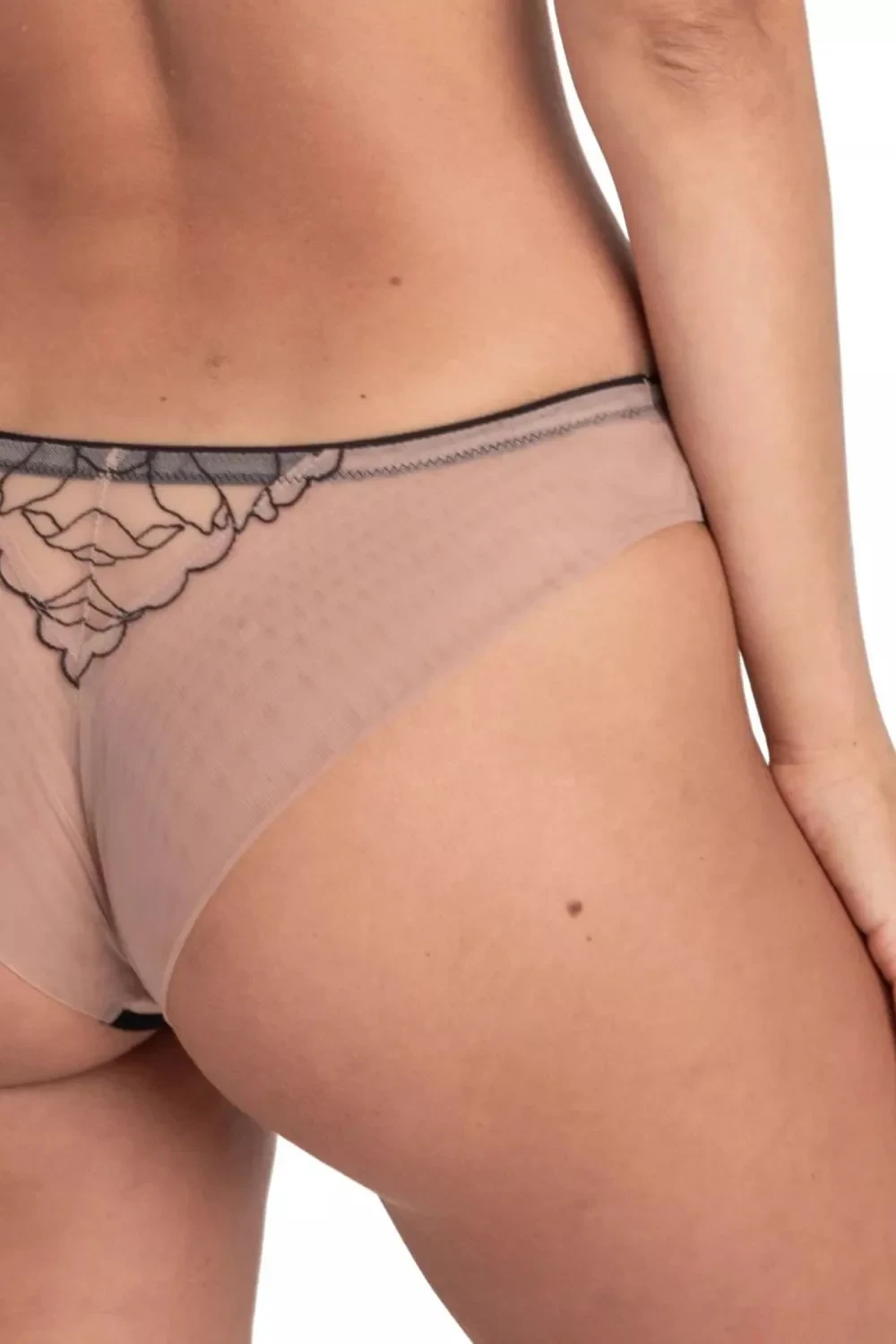 Dámské kalhotky Irina M300 tatoo Samanta - béžová barva - z transparentního tylu s výšivkou - efekt tetování - zadní část bezešvá