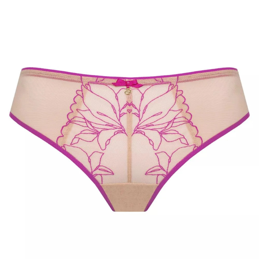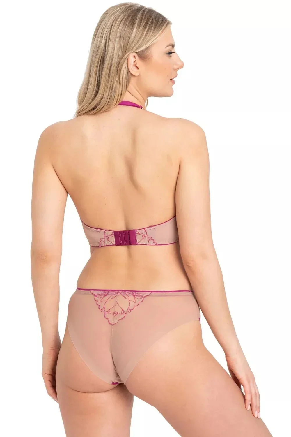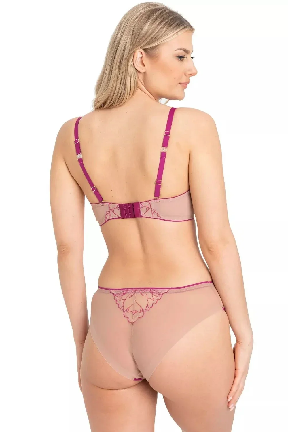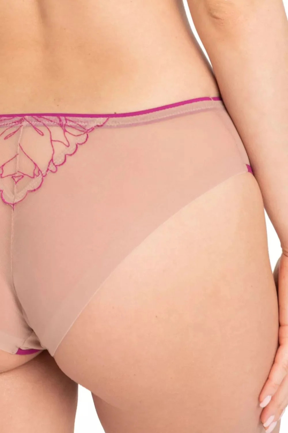 Dámské kalhotky Irina M300 fuchsia Samanta - béžová barva - z transparentního tylu s výšivkou - efekt tetování - zadní část bezešvá
