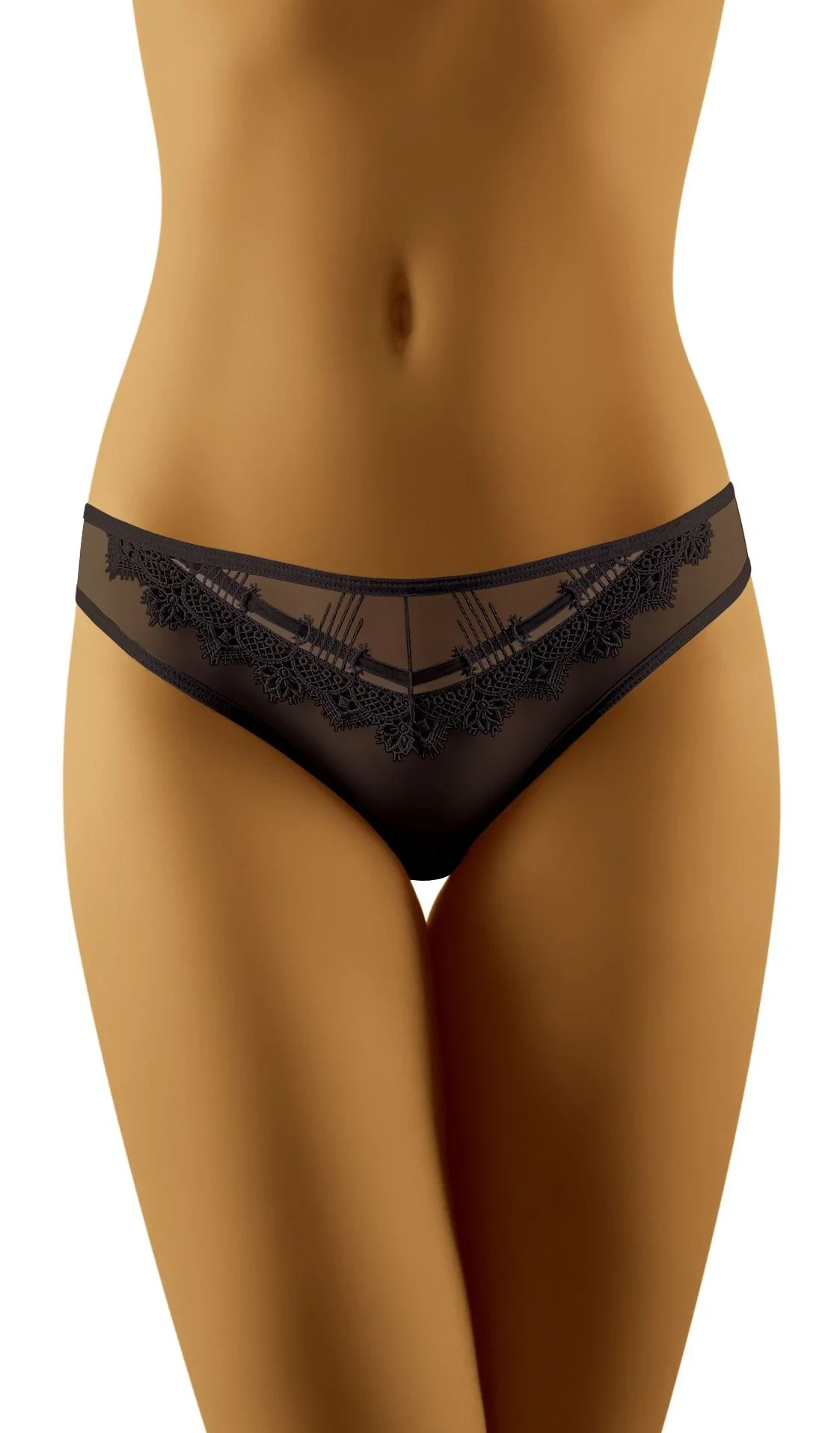 Krásné kalhotky z dvojitého, lehce průsvitného tylu. Přední díl působivě zvýrazněný stylovou výšivkou a stuhou. 83 % polyamid, 17 % elastan.