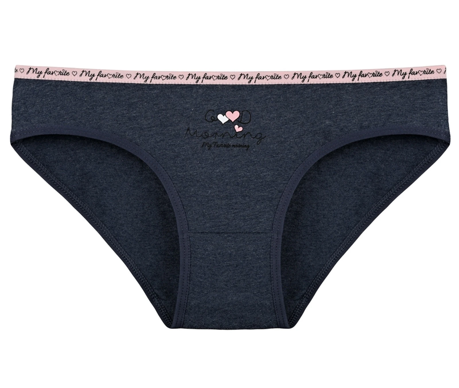 Dámské bavlněné kalhotky Joanne. Klasické kalhotky zdobené nápisem a srdíčky jsou pohodlným typem spodního prádla pro všechny příležitosti. Obzvláště oceníte materiálové složení - 95% bavlna a 5% elasten. Použitý materiál je příjemný a poddajný na dotek.
