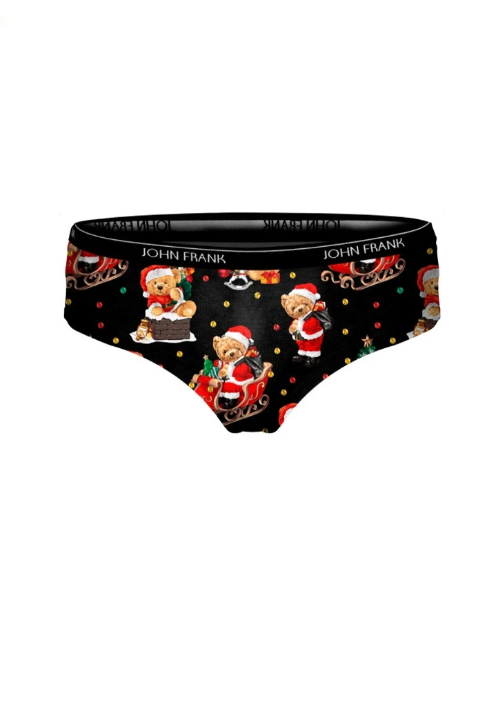 Dámské kalhotky střihu hipster od značky John Frank z limitované vánoční kolekce. Bavlněné kalhotky s módně zpracovaným potiskem jsou velmi příjemné na dotek a pohodlné při nošení. Jemná, středně široká guma v pase má kolem logo John Frank. Do vnitřního dílu je zapracován bavlněný klínek pro komfortní nošení. Slaďte se v kolekci ON & ONA, dámské kalhotky i pánské boxerky naleznete u nás v jednom designu, buďte IN s partnerem.
