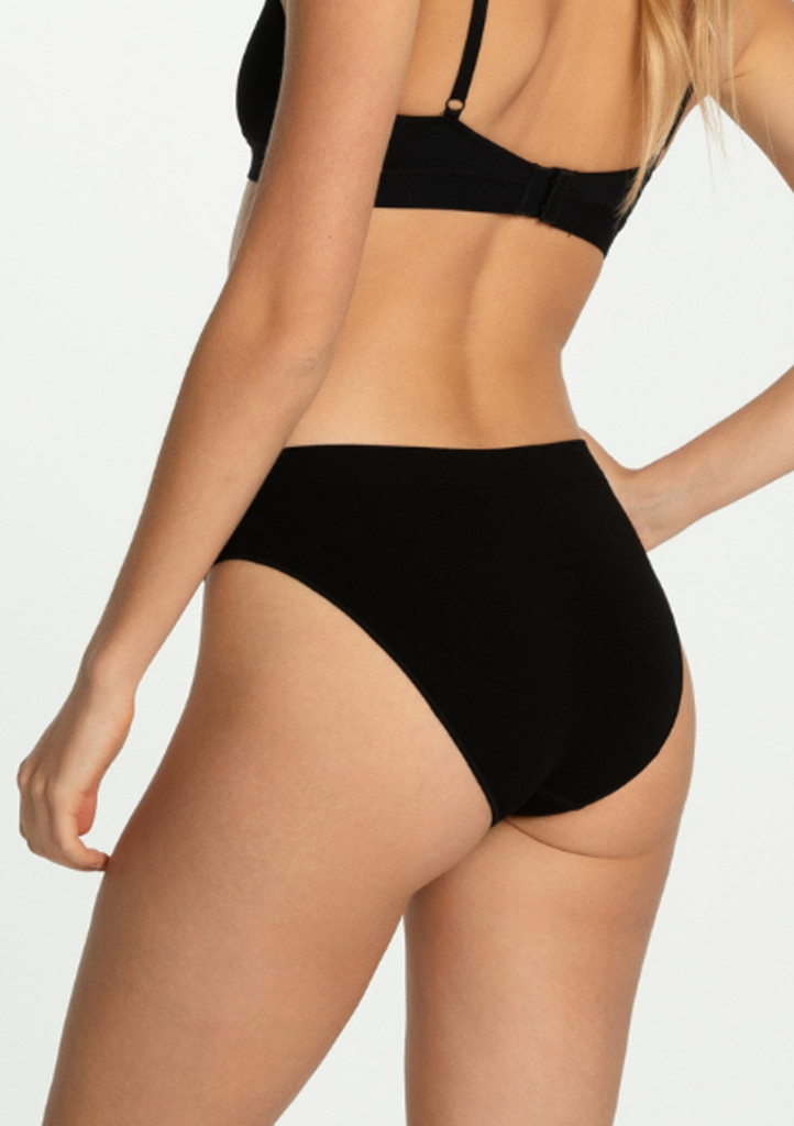 Klasické dámské kalhotky Julimex v černé barvě jsou vyrobené z mimořádně jemného a prodyšného bambusového vlákna, které poskytuje maximální pohodlí po celý den. Bezešvý střih zajišťuje, že se kalhotky nerýsují pod oblečením a perfektně přiléhají k tělu. Materiál je příjemný, pružný a šetrný i k citlivé pokožce. Skvělá volba pro ženy, které hledají kombinaci jednoduchosti, elegance a dokonalého komfortu.