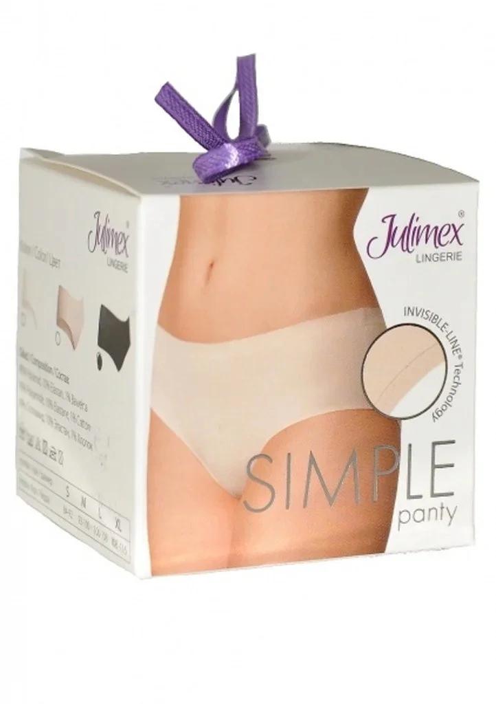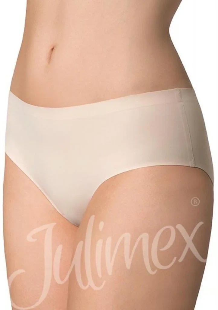 Dámské elegantní kalhotky značky Julimex. Jemné a dokonale hladké, bezešvé kalhotky klasického střihu v bílé, tělové nebo černé barvě. Horní obvod kalhotek a obvod nohaviček je zpevněn skrytou pevnou gumičkou, která se dokonale přizpůsobí Vašim partiím. Do vnitřního dílu je zapracován bavlněný klínek. Kalhotky jsou vyrobeny laserovou metodou a díky tomu dokonale přilnou k tělu, nikde se nezařezávají a budou skvělé při nošení přilnavého nebo letního oblečení. Tyto elegantní kalhotky jsou velmi příjemné na dotek a jsou baleny v dárkové krabičce s fialovou mašličkou.