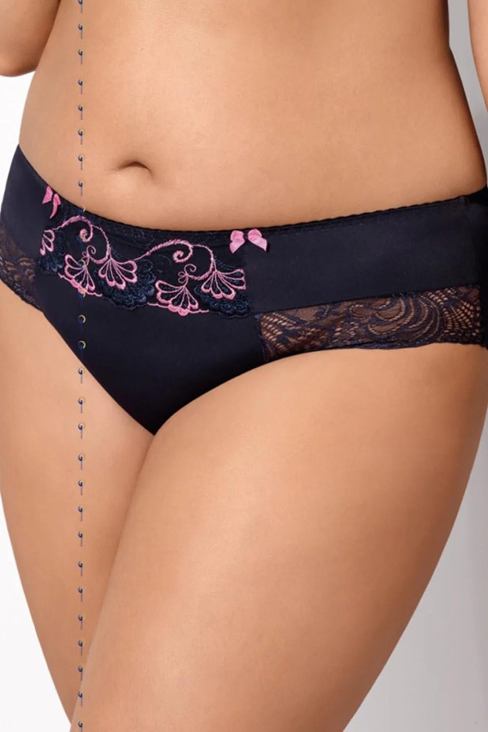 Klasické, krásné kalhotky K 295 Cynthie Gorsenia - ve předu jsou ozdobené z granátovo-růžové výšivky a růžovými mašličkami - nohavičky jsou zdobené krajkou - vzadu je trojúhelníček z jemné krajky - nohavičky jsou lemované gumokrajkou