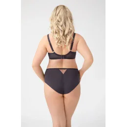 Přední díl kalhotek zdobí asymetrický prvek z potištěného tylu a z výšivky podšité hladkým tylem. Boky modelu jsou ušité z tylu. Nohavičky lemuje pružná páska.