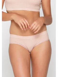 Dámské kalhotky Lingadore z nové letní kolekce 2021. Kalhotky mají klasický střih, jsou ušity z příjemného žebrovaného materiálu a mají vyšší boky. Jsou lemovány nenápadnou jemnou kraječkou. Vnitřní část tvoří malý bavlněný klínek pro komfortní nošení.