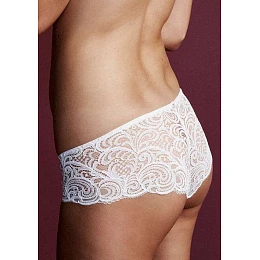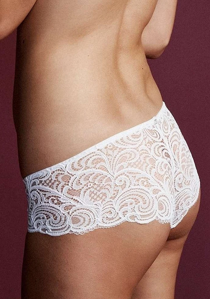 Dámské kalhotky šortkového střihu italské značky Lormar v celokrajkovém provedení. Krajka je průsvitná. Vprostřed zadního dílu je drobné ozdobné logo značky Lormar. Do vnitřního dílu je zapracován bavlněný klínek pro komfortní nošení.
