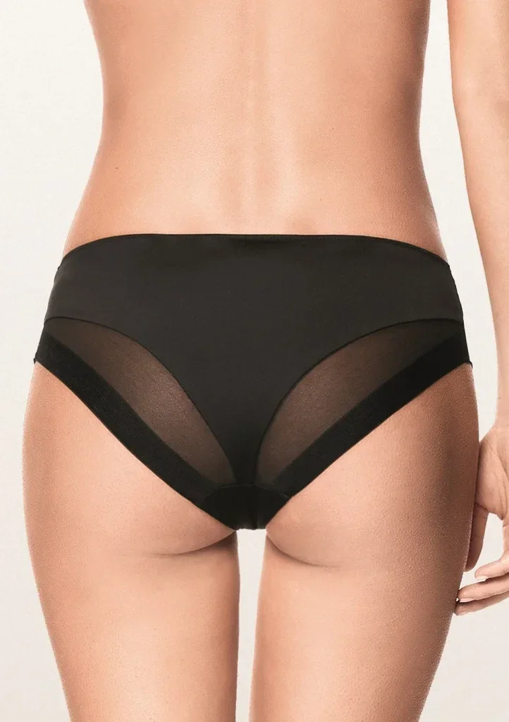 Dámské kalhotky klasického střihu od italské značky Lormar z nové kolekce Extra. Kalhotky jsou ušity z jemného komfortního materiálu. Jsou hladké, v kombinaci s transparentní látkou. Uprostřed mají všitý malý bavlněný klínek.