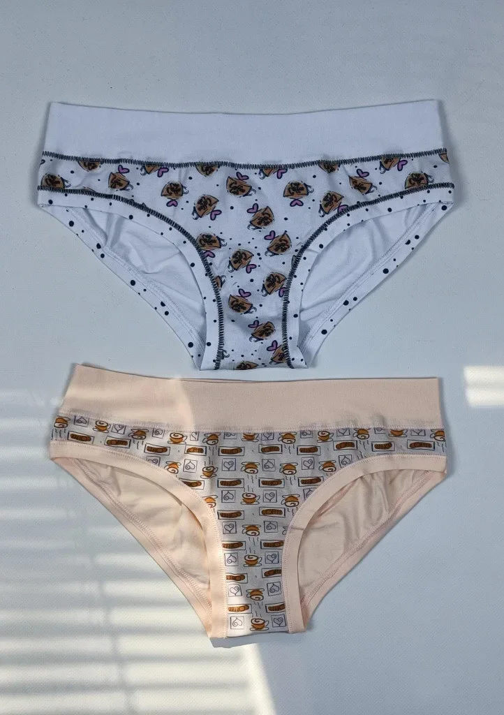 Dámské bavlněné kalhotky od značky Lovelygirl. Klasické kalhotky jsou příjemné na dotek, hladké a vpředu mají potisk s motivem kávy. Po obvodu je pohodlný pružný pás a do vnitřního dílu je všitý malý klínek pro komfortní nošení. Barva u kalhotek Vám bude vybrána náhodně nebo můžete barvu napsat do poznámky. Uvedená cena je za jeden kus. Jsou baleny v krabičce.