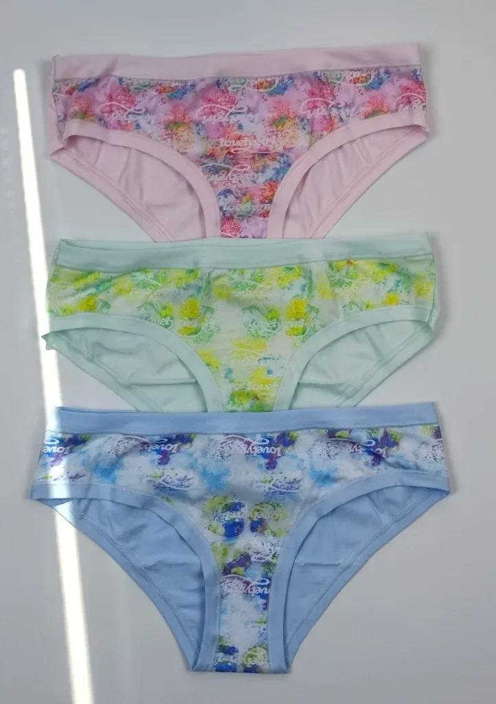 Dámské bavlněné kalhotky od značky Lovelygirl. Klasické kalhotky jsou velmi příjemné na dotek, hladké a vpředu mají jemný barevný potisk. Po obvodu je pohodlný pružný pás a do vnitřního dílu je všitý bavlněný klínek pro komfortní nošení. Barva u kalhotek Vám bude vybrána náhodně nebo můžete barvu napsat do poznámky. Uvedená cena je za jeden kus. Jsou baleny v krabičce.