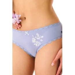 Kalhotky jsou v pase a na nohavičkách zakončeny ozdobnou krajkou, která dodává lehkost a romantiku. Klasický střih zajišťuje pohodlí a dobré přizpůsobení siluetě.