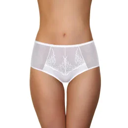 Klasické dámské kalhotky, kombinace síťoviny a mikrovlákna. Přední strana zdobená výraznou výšivkou hladká zadní strana.