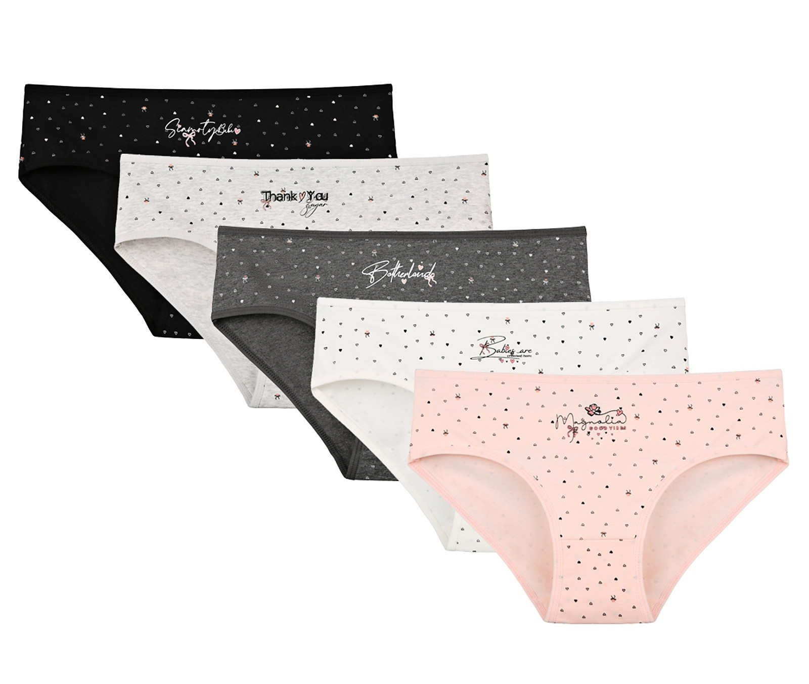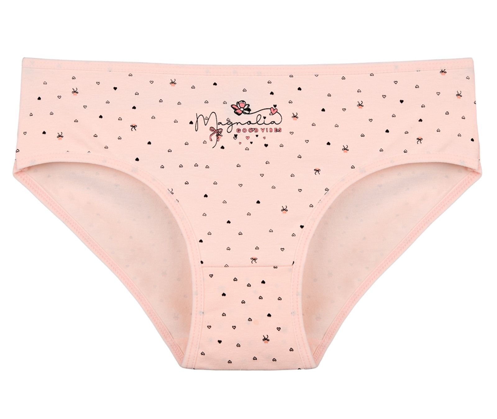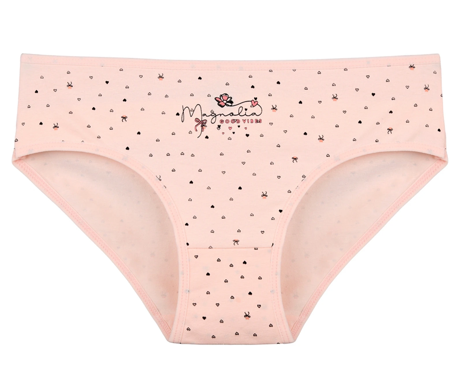 Dámské bavlněné kalhotky Magnolia. Slušivé klasické kalhotky s potiskem srdíček jsou pohodlným typem spodního prádla pro všechny příležitosti. Obzvláště oceníte materiálové složení - 95% bavlna a 5% elasten. Použitý materiál je příjemný a poddajný na dotek.
