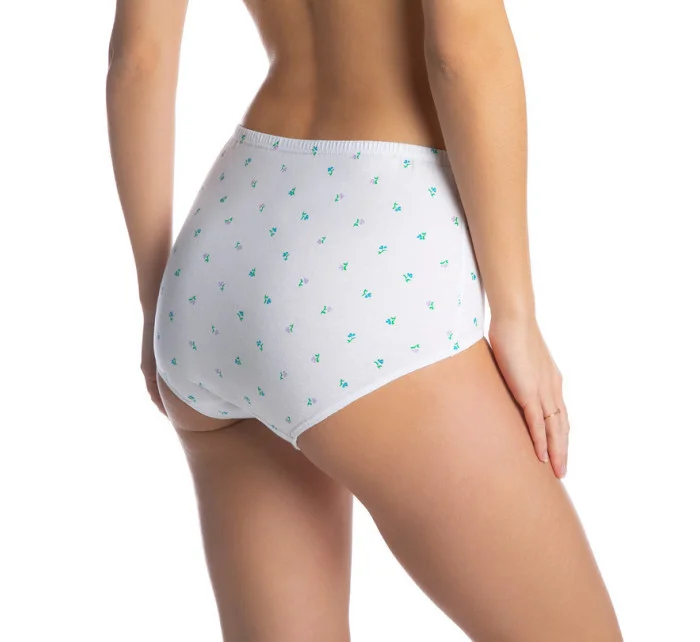 Dámské kalhotky klasického střihu bikini, ušité z přírodní bavlny. V balení je šest kusů kalhotek: bílé, bíle s květy, černé - mix.