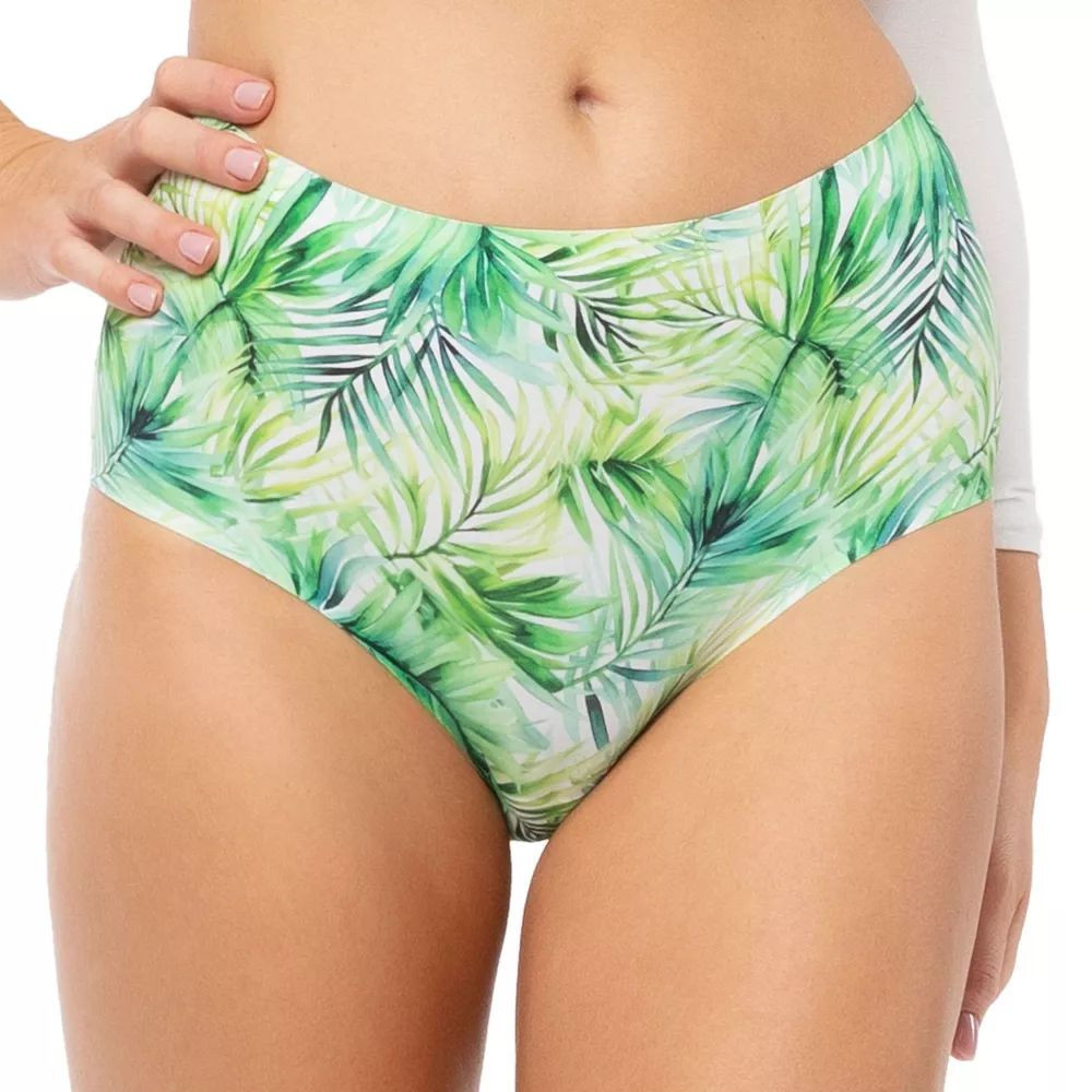 Dámské kalhotky Exotico simple maxi JULIMEX - zelená barva - barevný potisk - střižené laserem - bezešvé - široké boky