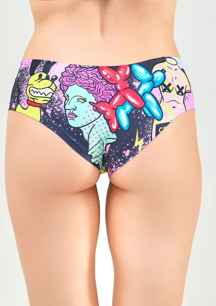 Kalhotky firmy MEMÉME zaujmou nápaditým a mladistvým potiskem a jsou určeny pro každou ženu, nebo dívku, kterou baví móda a design. Kalhotky jsou laserově střiženy a obšity plochými švy pro dokonalou kopii Vašich křivek. Pro zvýšení komfortu je uprostřed bavlněný klínek.