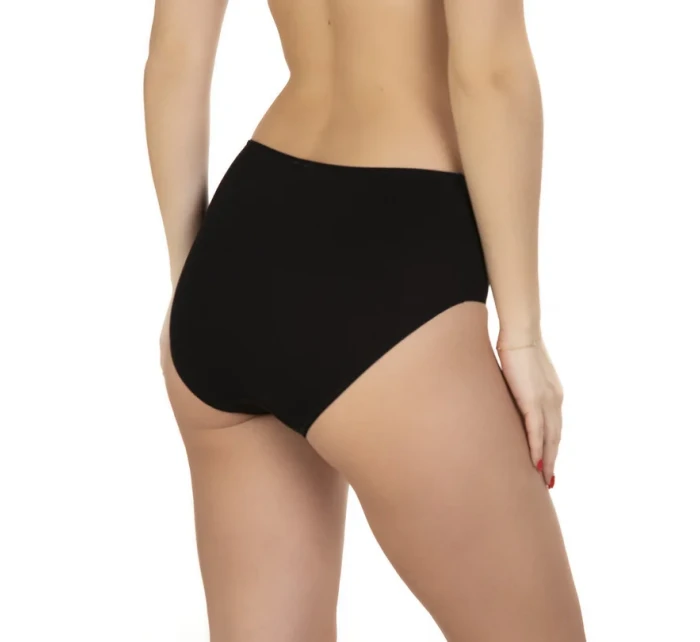 Kalhotky jsou univerzální a jsou balené po dvou kusech v černé barvě. Tento plný model se zvýšeným střihem částečně zakrývá bříško a vzadu důkladně kryje hýždě.