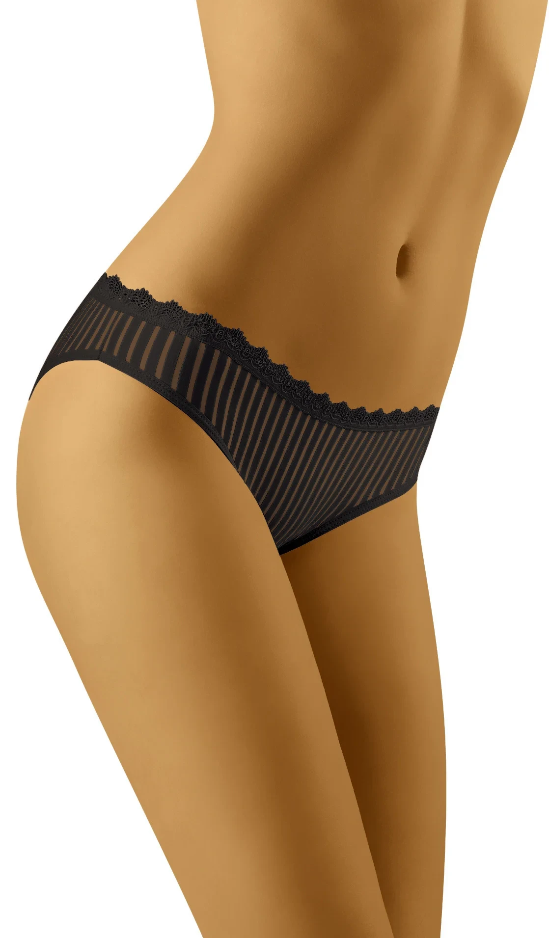 Klasické kalhotky z vysoce kvalitní tkaniny s žebrovaným vzorem, který je jemně průsvitný. Dobře střižené, neomezují v pohybu a netlačí. Složení: 83 % polyamid, 17 % elastan.