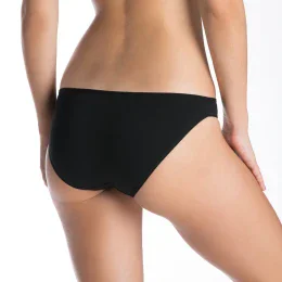Dámské kalhotky typu mini bikiny. V sadě po 3 kusech v černé barvě. V pase je pohodlná guma a ozdobná mašlička. Mají klasický střih, středně vysoký pas a širší boky. Velice pohodlné.