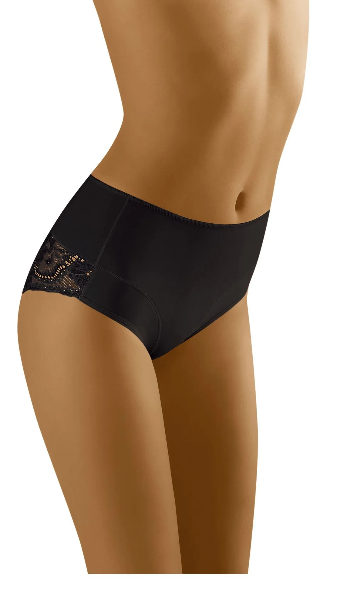 Pohodlné, mírně vyšší kalhotky, jemně tvarující oblast břicha, které svádějí jak svým pohodlným střihem, tak krásnou krajkou. Krajka na hýždích je sexy zvýrazňuje. Složení: 58 % polyamid, 42 % elastan.
