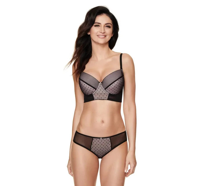 Půvabné dámské kalhotky, které jsou vyrobené z měkkého černého tylu se svůdnými puntíky.