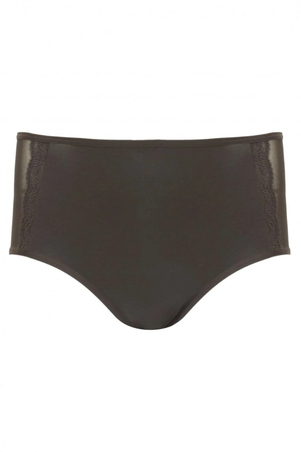Dámské kalhotky Kianna Emili - černá barva - kalhotky mají klasický střih - zvýšený pas - na bocích mají jemnou krajku s květinovým vzorem - hladká zadní část
