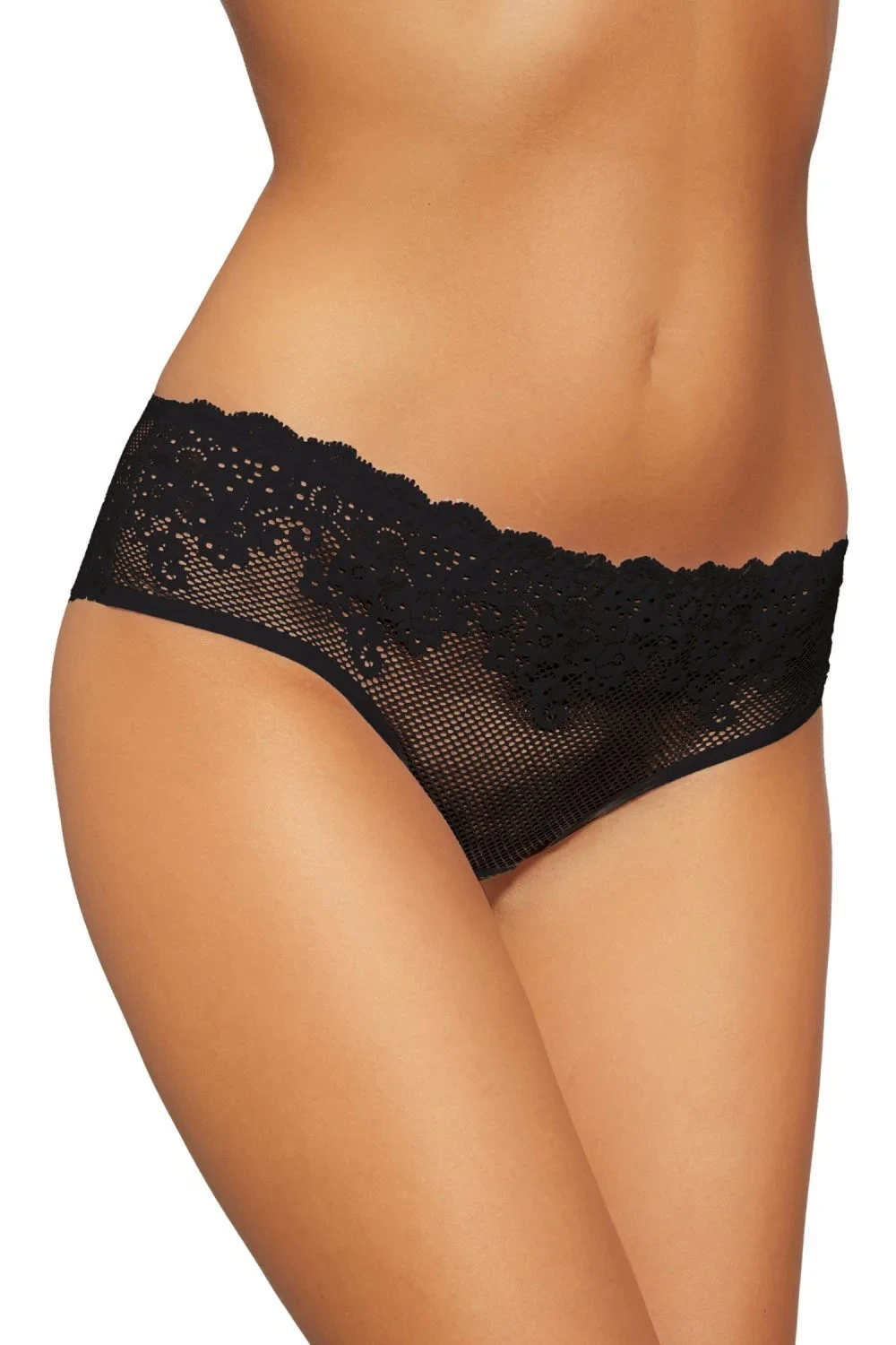 Dámské kalhotky 175 Gabidar - černá barva - kalhotky mají klasický střih - jsou z průhledné látky - horní lem na přední straně je zdobený květovanou výšivkou ve stejné barvě - sed je zesílený látkou - odvážný design