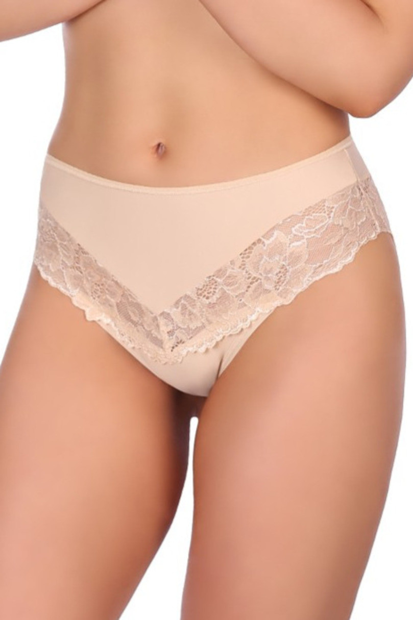 Dámské kalhotky z hladkého mikrovlákna, vzadu zakončené síťovinou a krajkou.