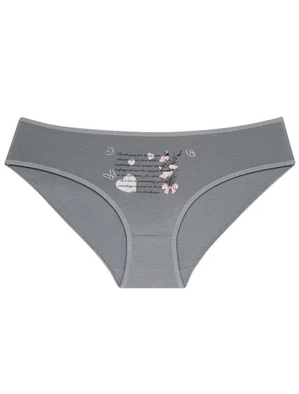 Dámské kalhotky Iva. Dámské kalhotky klasického střihu. Kalhotky jsou ozdobeny potiskem květin a drobným nápisem. Použitý materiál je příjemný a poddajný na dotek.
