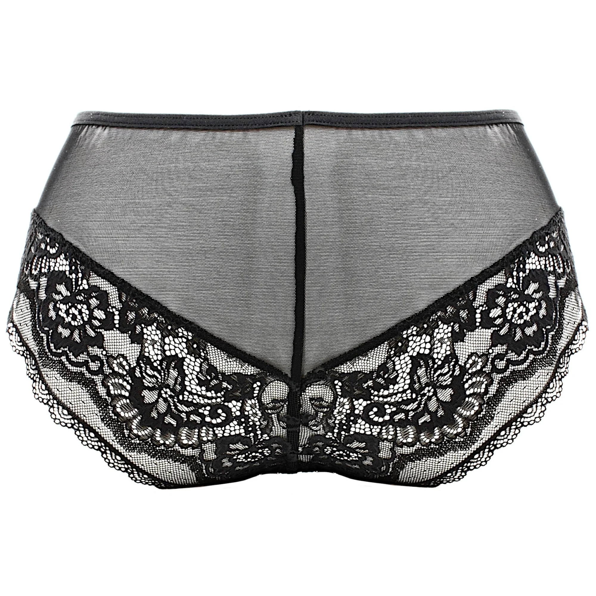 Dámské kalhotky 1824/1 Venus black AVA - černá barva - klasický střih - vyrobené z krajky s květinovým motivem - ozdobené vsadkami z jemné tylové síťoviny