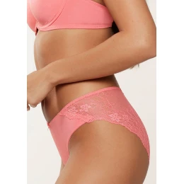 Dámské kalhotky od značky LingaDore. Kalhotky jsou hladké v kombinaci s jemnou krajkou se vzory kytiček. V pase a v přední části nohaviček je všitá jemná gumička. Zadeček je celokrajkový. V přední části jsou ozdobené malou mašličkou. Do vnitřního dílu je zapracován bavlněný klínek pro pohodlné nošení.