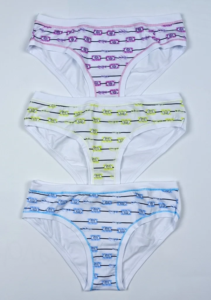 Dámské bavlněné kalhotky od značky Lovelygirl. Klasické kalhotky jsou jemné, hladké a vpředu mají potisk. Po obvodu je pohodlný pružný pás a do vnitřního dílu je všitý malý klínek pro komfortní nošení. Barva u kalhotek Vám bude vybrána náhodně nebo můžete barvu napsat do poznámky. Uvedená cena je za jeden kus. Jsou baleny v krabičce.