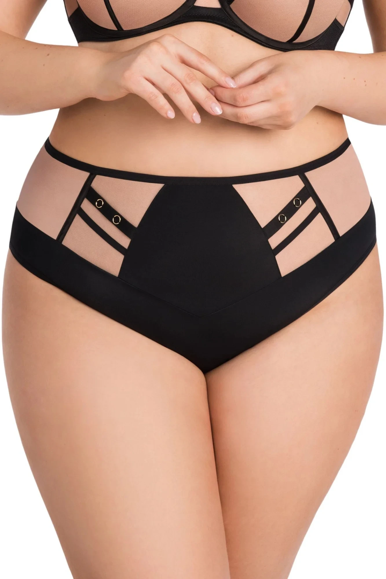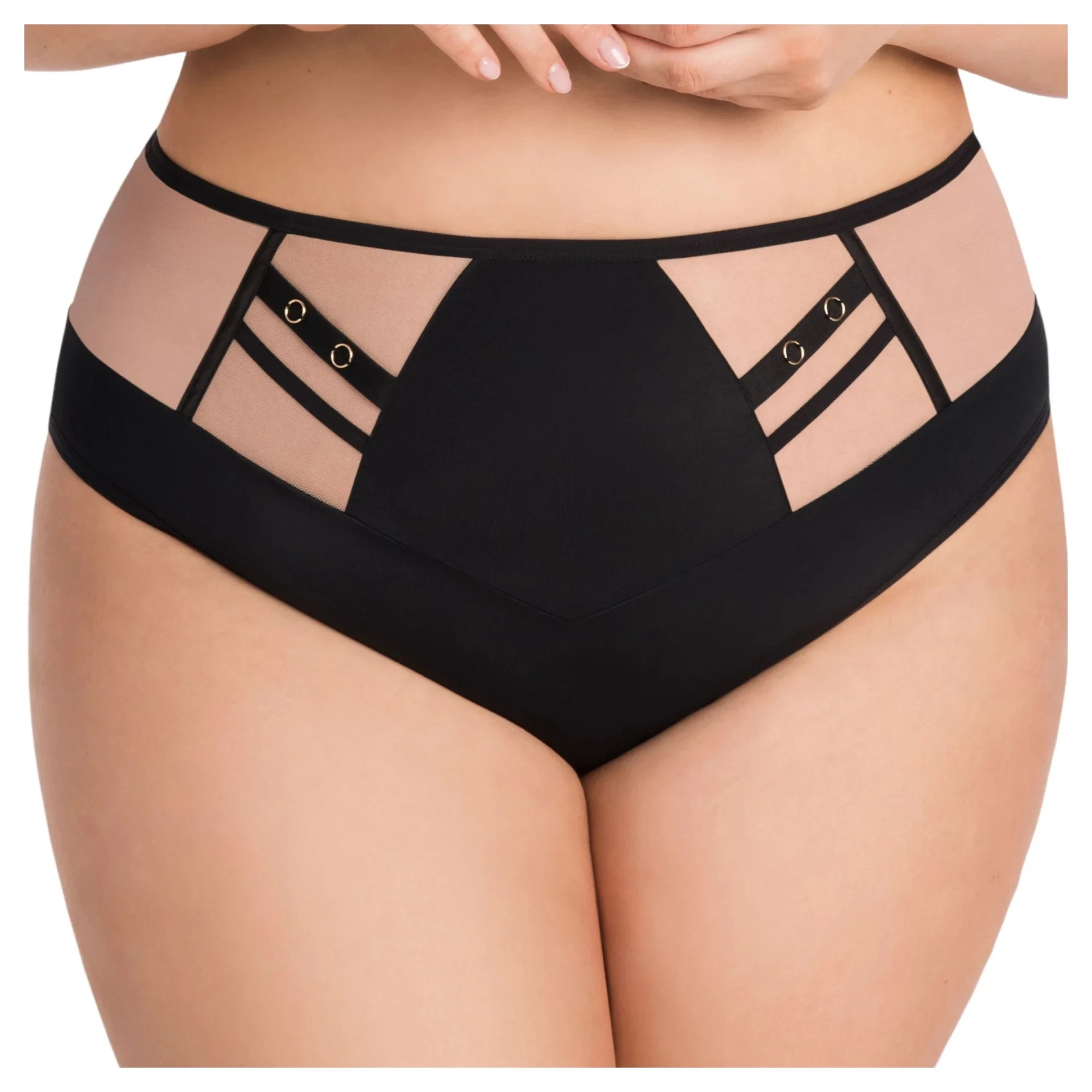 Dámské kalhotky 886 Tesora GORSENIA - béžová barva - z mikrovlákna s prvky elastického tylu - švy kryté matnými pásky - na přední straně zdobené proužky z elastických pásků - zadní strana zakončená mikrovláknem - rozkrok podšitý bavlnou