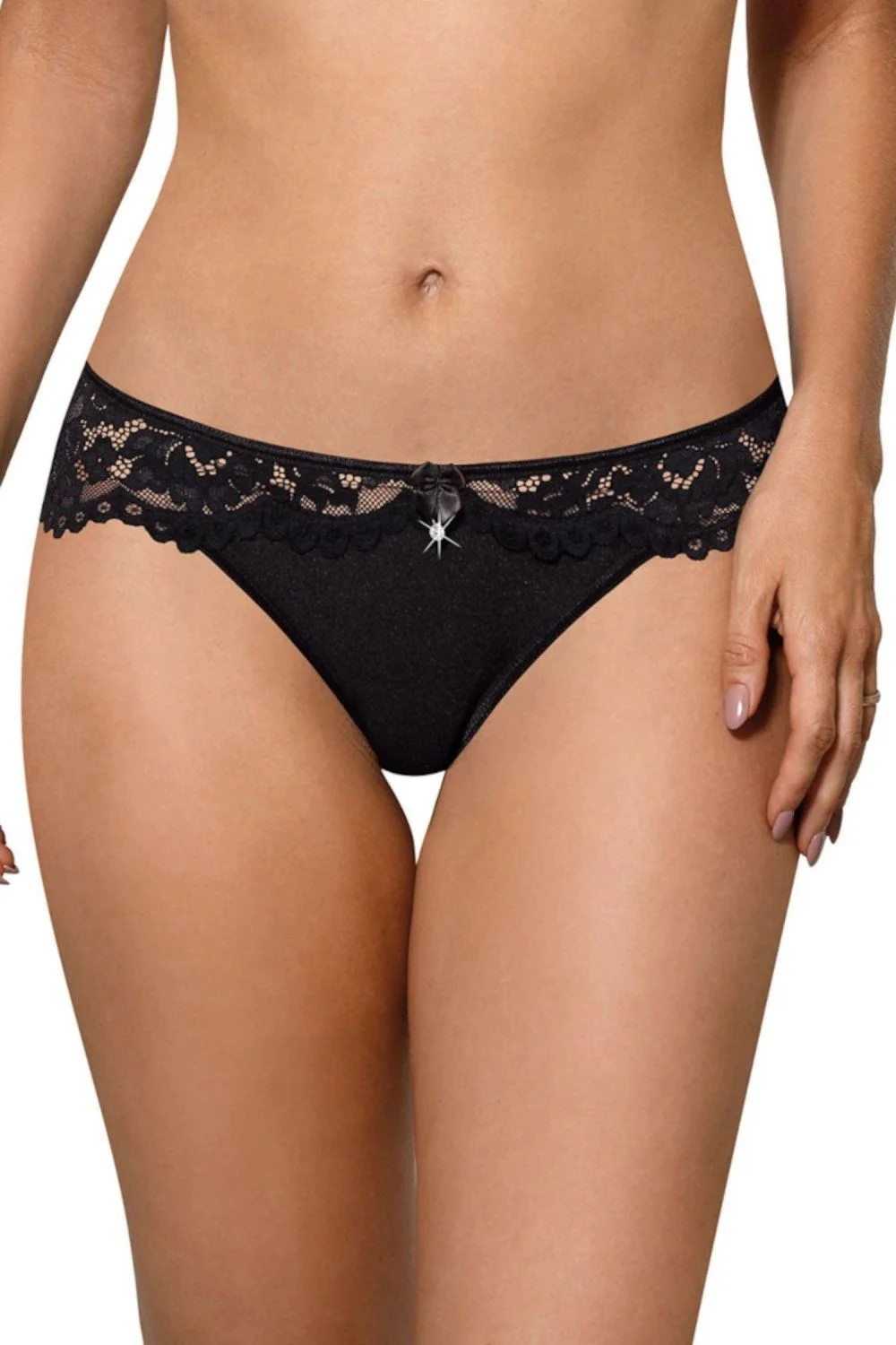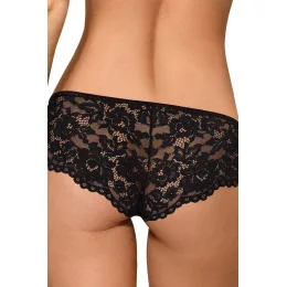 Dámské kalhotky Newia black ROZA - černá barva - kombinace krajky a mikrovlákna - zadní část hladká
