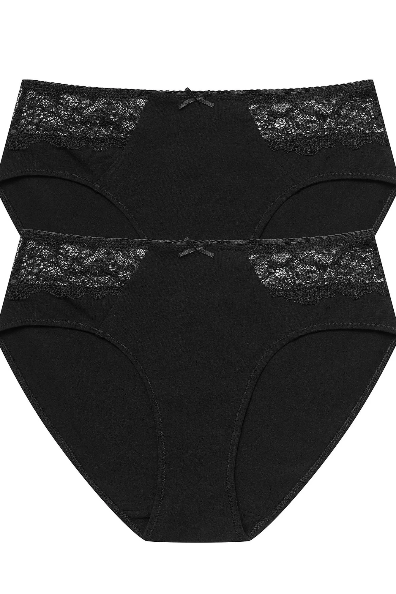 Dámské kalhotky 39889 Hally k001 HENDERSON - černá barva - z vysoce jakostní bavlny - 2 ks v balení - klasický střih - krajkový horní lem - ozdobná mašlička v pase - výhodné balení dvou kusů
