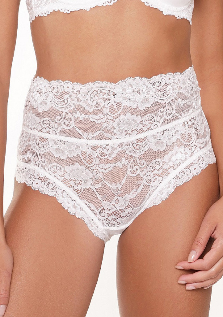 Elegantní kalhotky s vysokým pasem z kolekce Fantasy 1400B v odstínu ivory zaujmou romantickým vzhledem a smyslnými detaily. Jsou ušité z jemné elastické krajky, která působí lehce a ženskě. Přední část je decentní, zatímco zadní strana překvapí sexy šněrováním, které dodává celému modelu originální nádech. Vysoký pas krásně tvaruje postavu a poskytuje pohodlí při nošení. Ideální v kombinaci s podprsenkou ze stejné kolekce.
