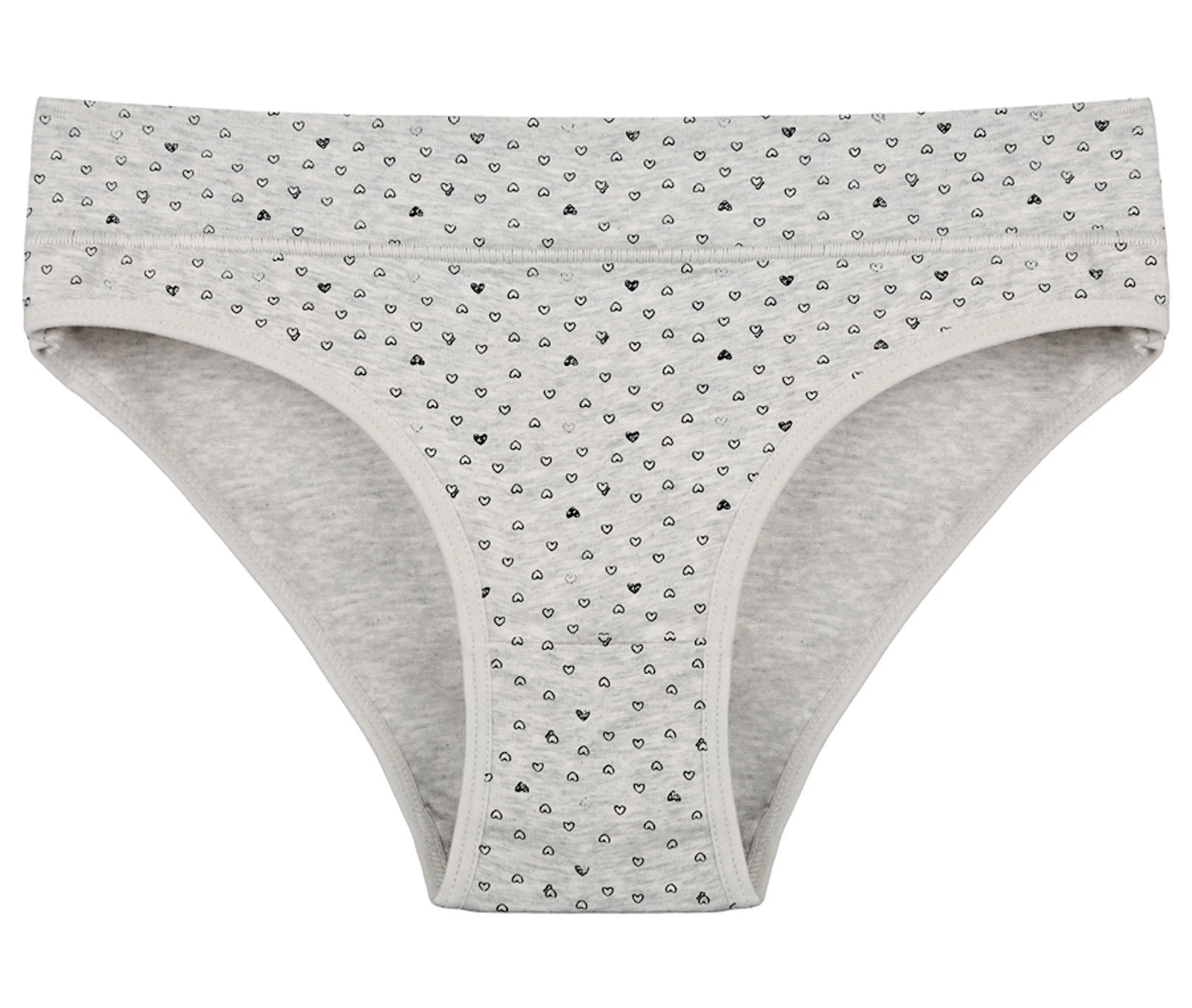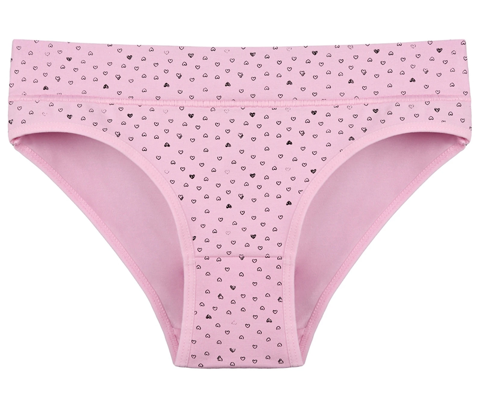 Dámské bavlněné kalhotky Jessie. Slušivé klasické kalhotky, potištěné drobnými srdíčky, jsou pohodlným typem spodního prádla pro všechny příležitosti. Obzvláště oceníte materiálové složení - 95% bavlna a 5% elasten. Použitý materiál je příjemný a poddajný na dotek.