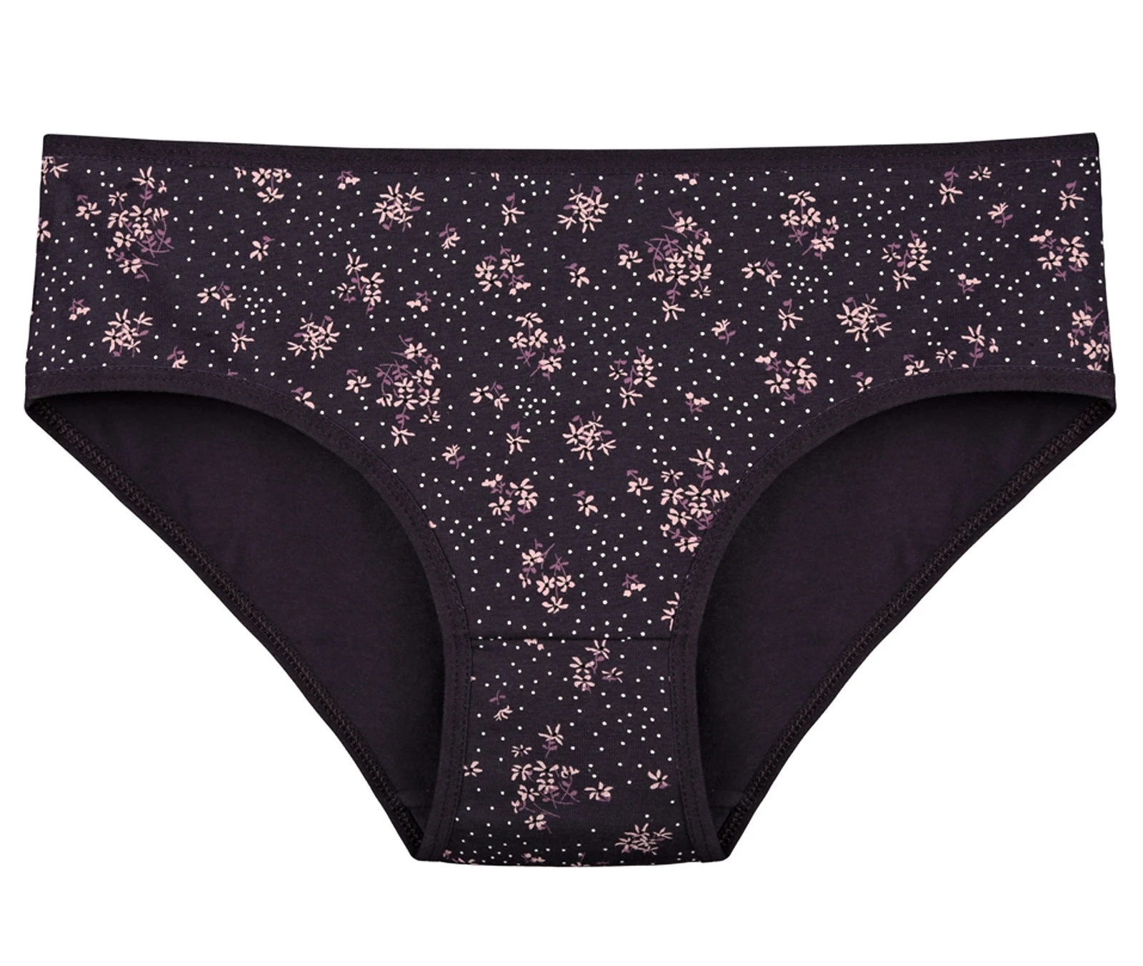 Dámské bavlněné kalhotky Zuzka. Slušivé klasické kalhotky jsou pohodlným typem spodního prádla pro všechny příležitosti. Jsou zdobené květinovým potiskem. Obzvláště oceníte materiálové složení - 95% bavlna a 5% elasten. Použitý materiál je příjemný a poddajný na dotek.
