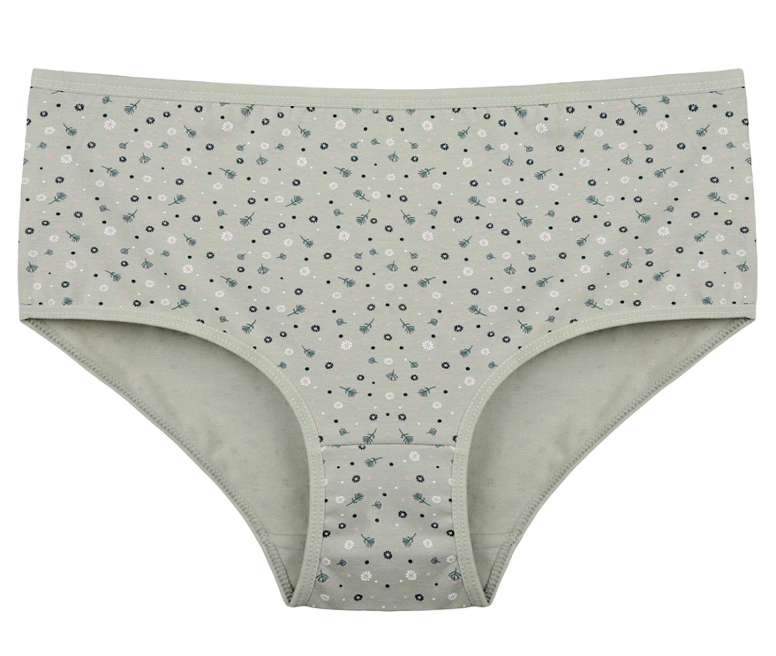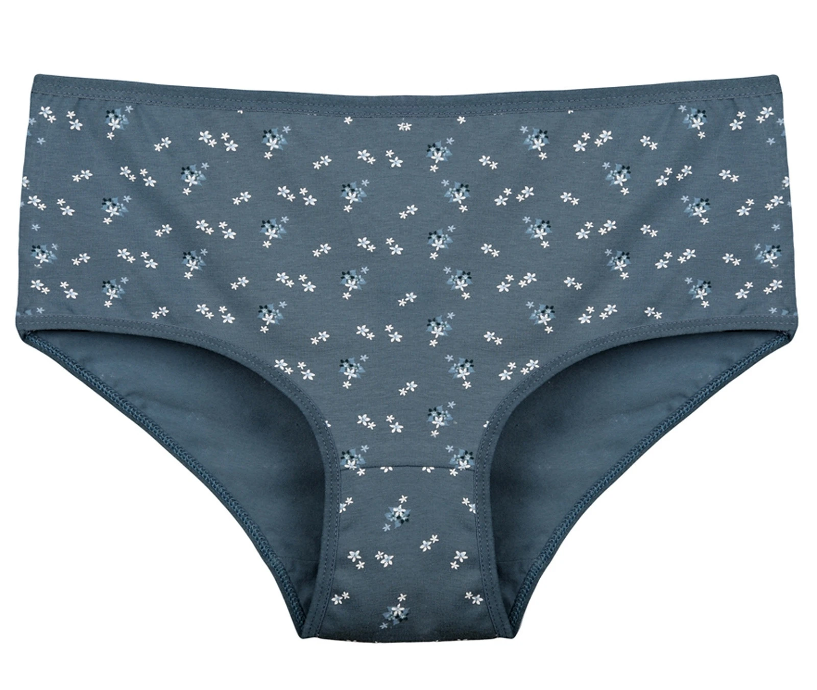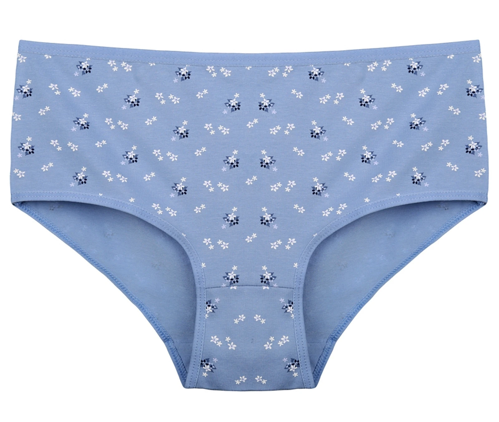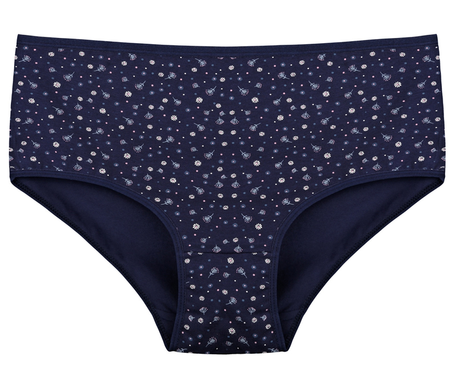 Dámské bavlněné kalhotky Mája. Slušivé klasické kalhotky jsou pohodlným typem spodního prádla pro všechny příležitosti. Jsou zdobené potiskem květů. Obzvláště oceníte materiálové složení - 95% bavlna a 5% elasten. Použitý materiál je příjemný a poddajný na dotek.
