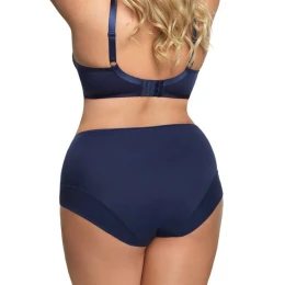 Dámské kalhotky 497 Paradise blue GORSENIA - tmavě modrá barva - z hladkého mikrovlákna - ozdobené vsadkami z transparentní síťoviny - efektní krajka s květinovým vzorem