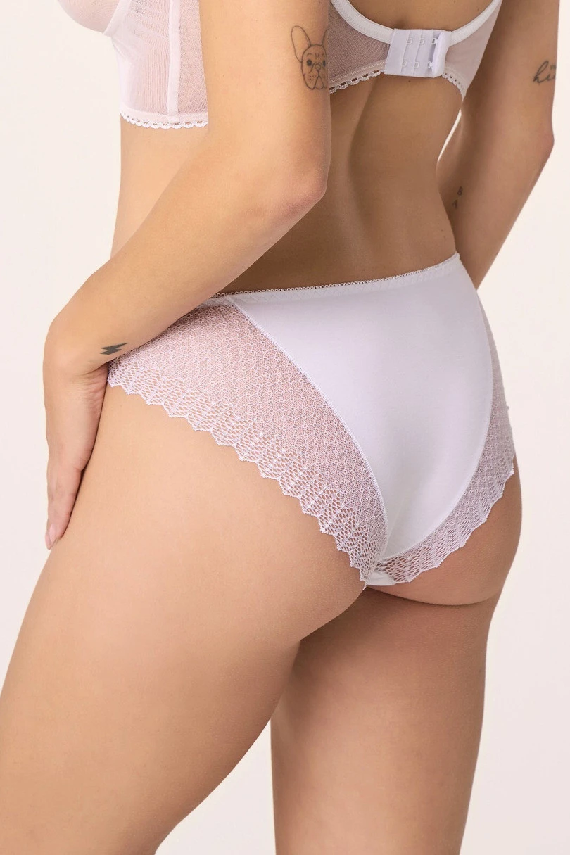 Figi damskie BBL 221 to połączenie klasycznej elegancji, komfortu i subtelnej kobiecości. Model został zaprojektowany z myślą o codziennym noszeniu, oferując idealne dopasowanie oraz wyjątkową wygodę przez cały dzień. Klasyczny krój delikatnie podkreśla sylwetkę, a płaskie wykończenia sprawiają, że figi pozostają niewidoczne pod ubraniem. Wysokiej jakości bawełna z dodatkiem elastanu zapewnia oddychalność, miękkość oraz elastyczność, dzięki czemu bielizna doskonale układa się na ciele. Boki wykonane z delikatnej, koronkowej siateczki dodają całości lekkości i eleganckiego charakteru. Model dostępny jest w trzech uniwersalnych kolorach: białym, czarnym orEAN čárové kódy zboží jsou: