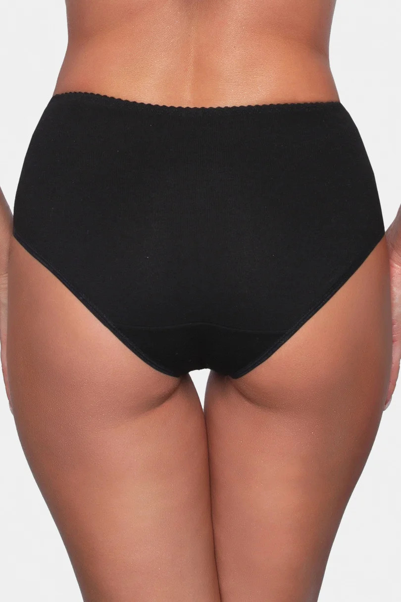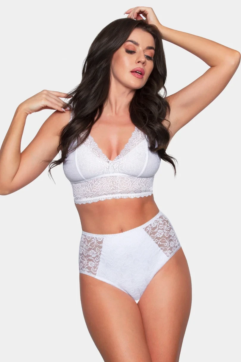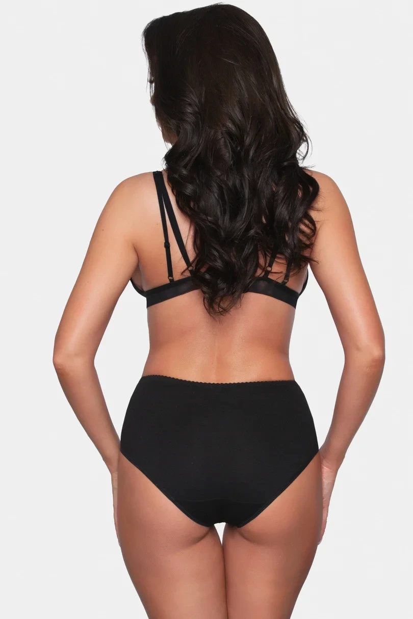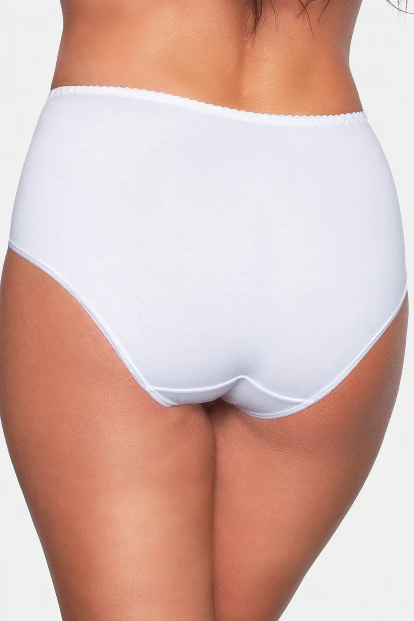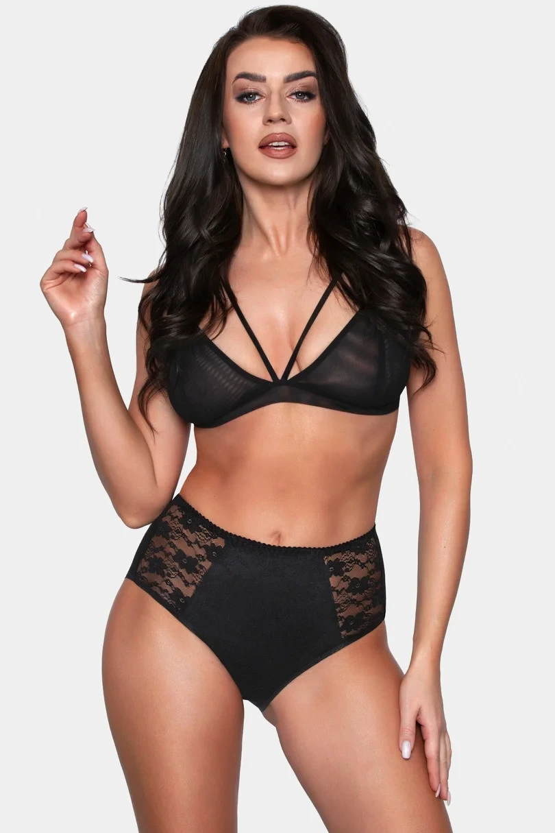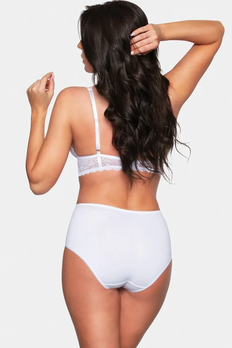 Kalhotky s vyšším pasem. Vpředu je krajka podšitá látkou, která jemně modeluje bříško. Pozadí je bavlněné. 92% bavlna, 8% elastan.