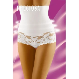 Vysoké stahovací kalhotky. Spodní část zdobí efektní květovaná krajka. Vrch je ušitý z moderního materiálu, který silně modeluje břicho a tvoří ladné křivky. Z vnitřní strany je silikonový pásek, který zabraňuje sesouvání kalhotek. Model je vhodný na svatbu, na karnevaly i na rande.