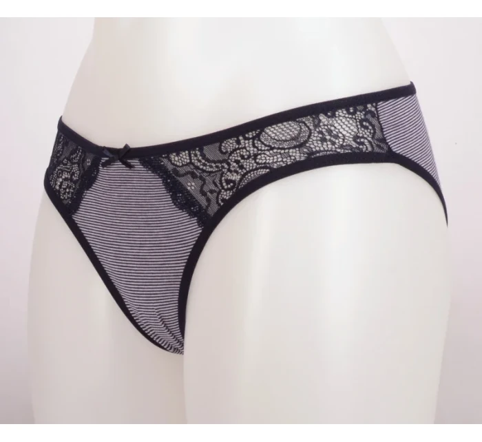 Dámské kalhotky Andy. Zajímavě řešené dámské kalhotky mají boky z krajky a porstřední část z pruhované látky. Použitý materiál je jemný a poddajný na dotek.