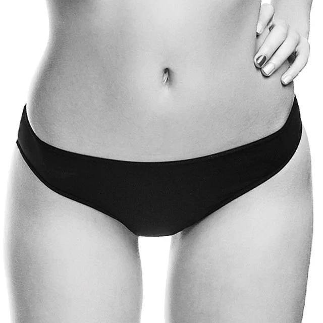 Nádherné atraktivní kalhotky vhodné pro všechny tělesné typy s vyměřenými okraji stran 5 cm, které se vztahují na hýždě téměř kompletně, a částečně pokrývající kyčle a třísla.